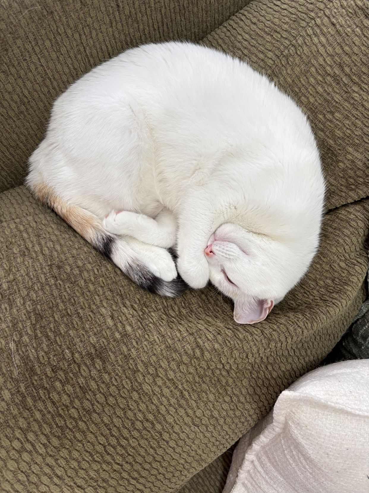 This is Snowball-previous owner named him. He was with a gentleman who had 12 cats and unfortunately became terminally ill. I feel Snowball is so vocal having to compete for attention 😅 he is about 13 or 14. He thinks he’s a dog-plays fetch and tells his dad he hasn’t eaten. (Lies) 💕
